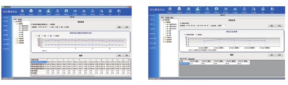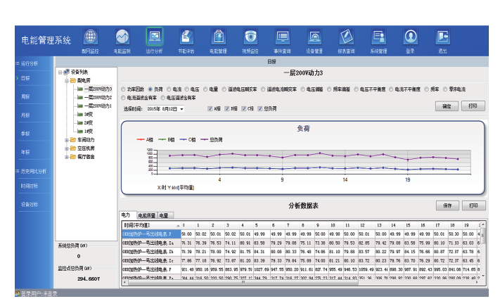 运行分析为管理者提供设备日、月、年的电能分析报告,报告以曲线、表格的形式展示,并从电力、电能质量和电量三个方面进行数据对照,指导电能管理者分析设备配电网络的运行情况